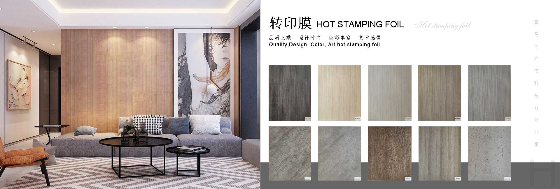 青島中澤信科技有限公司地處中國山東省青島市,致力于多種裝飾膜的研發(fā)和生產(chǎn),所生產(chǎn)的熱轉(zhuǎn)印膜和包覆膜廣泛應用于多種家裝材料如建材、家具、裝飾框等。本公司擁有60多名專業(yè)工人,10000平米標準廠房,20年印刷行業(yè)經(jīng)驗,15年熱轉(zhuǎn)印行業(yè)經(jīng)驗,配備8套8色印刷生產(chǎn)線,采用韓國技術以及環(huán)保級原材料具備,ISO認證。工廠距離青島國際機場和青島港不足一小時車距這些都是我公司能為全球客戶提供高質(zhì)量產(chǎn)品以及維持良好合作的重要因素。